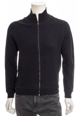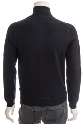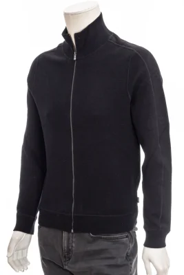 Gerade geschnittene BOSS Strickjacke aus einem Baumwoll-Mix mit Schurwoll-Anteil und Mouliné-Struktur. Ein Reißverschluss rundet den Cardigan ab.