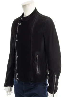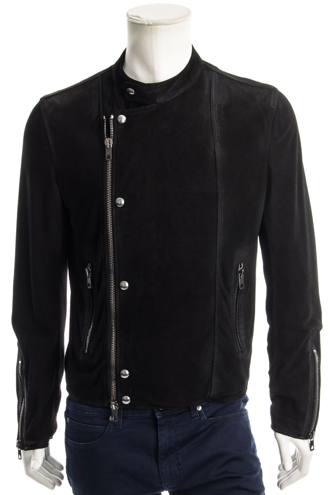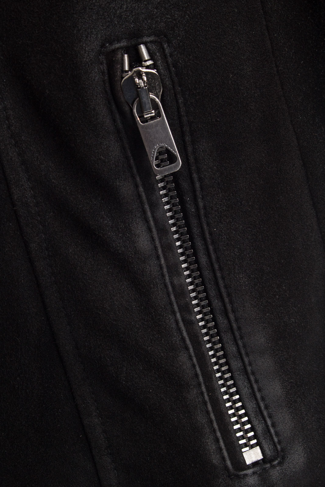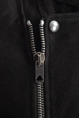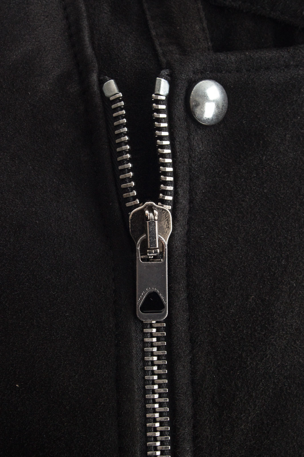 Stylische Wildlederjacke mit asymetrischen Reißverschluss und Druckknöpfen.