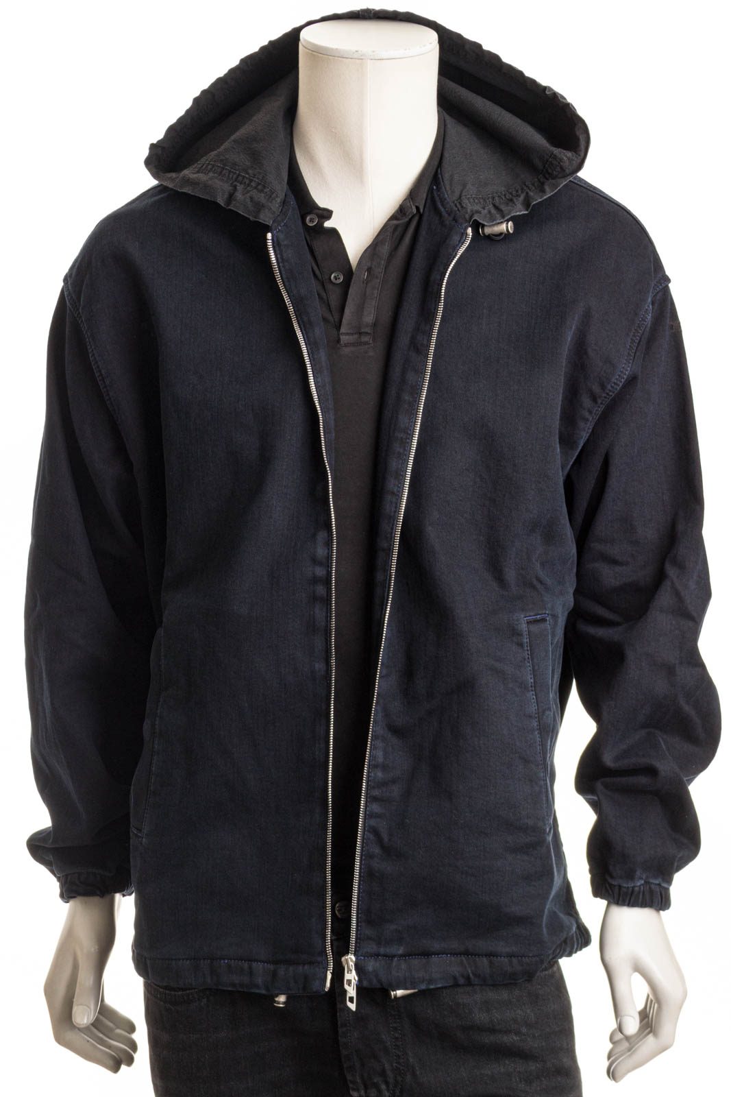 Diese leichte Jacke aus JoggJeans bietet allerhöchsten Tragekomfort. Die Kapuzensilhouette verfügt über angesetzte Schultern, geknöpfte Seitentaschen und ein rotes D-Logo, das auf dem Ärmel gestickt ist.
