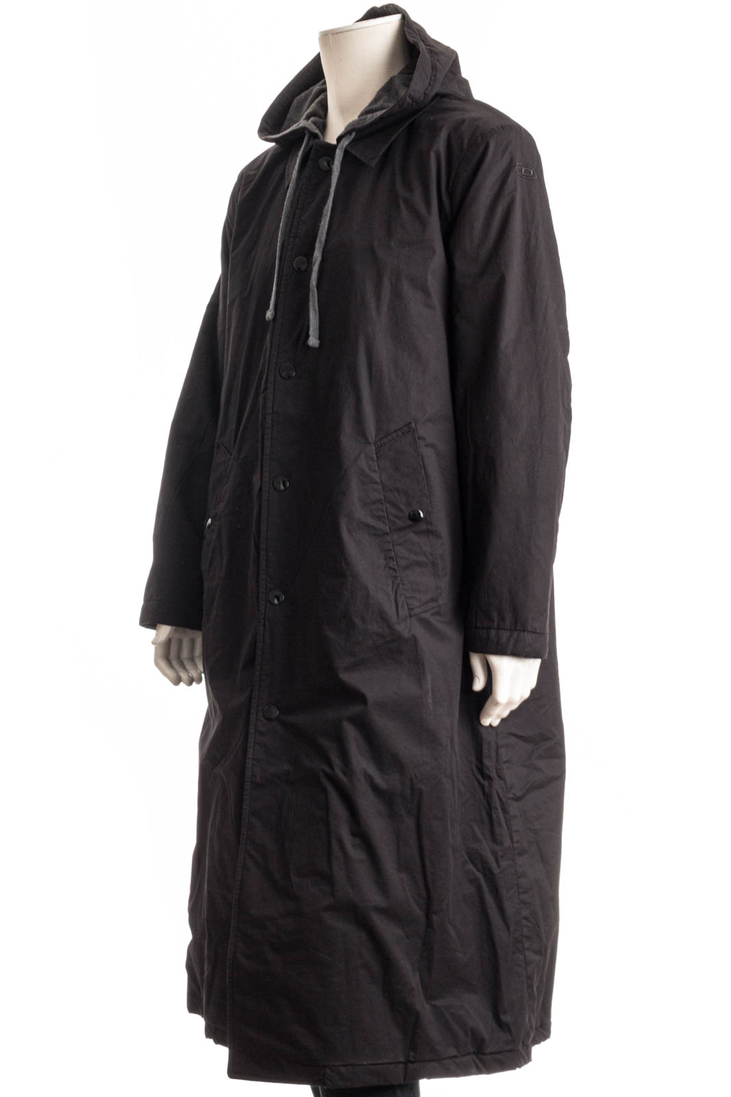 Weit geschnittener DIESEL-Mantel mit Kapuze, Druckknöpfen und weichem Jersey-Futter.