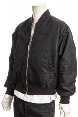Auf der einen Seite einfarbig, auf der anderen mit Color-Blocking, bietet diese Bomberjacke für Herren doppelte Styling-Optionen. Hergestellt aus recyceltem Nylon-Satin und gepolstert für Wärme, hat sie eine normale Passform, klassische gerippte Abschlüsse und Metallösen unter den Armen für Belüftung. Auf der Rückseite behauptet ein großdimensioniertes Oval D das Diesel-DNA, ausgeglichen durch kleinere, auf der Brust gestickte Embleme.
