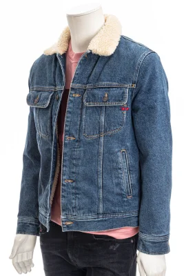 Jeansjacke mit Fellkragen und 2 Taschen an der Brust.