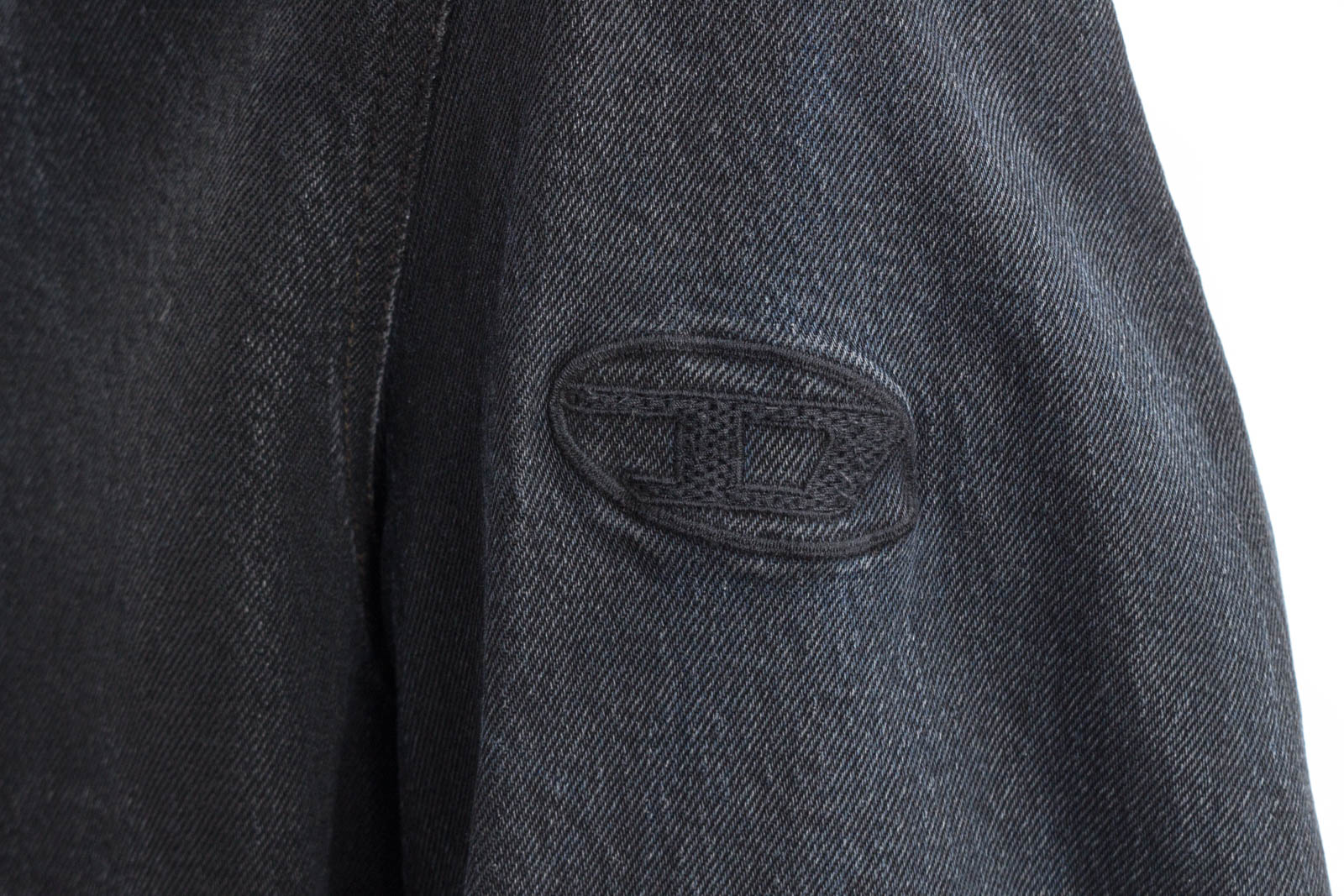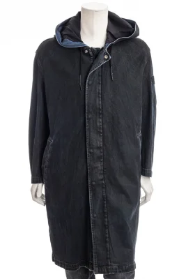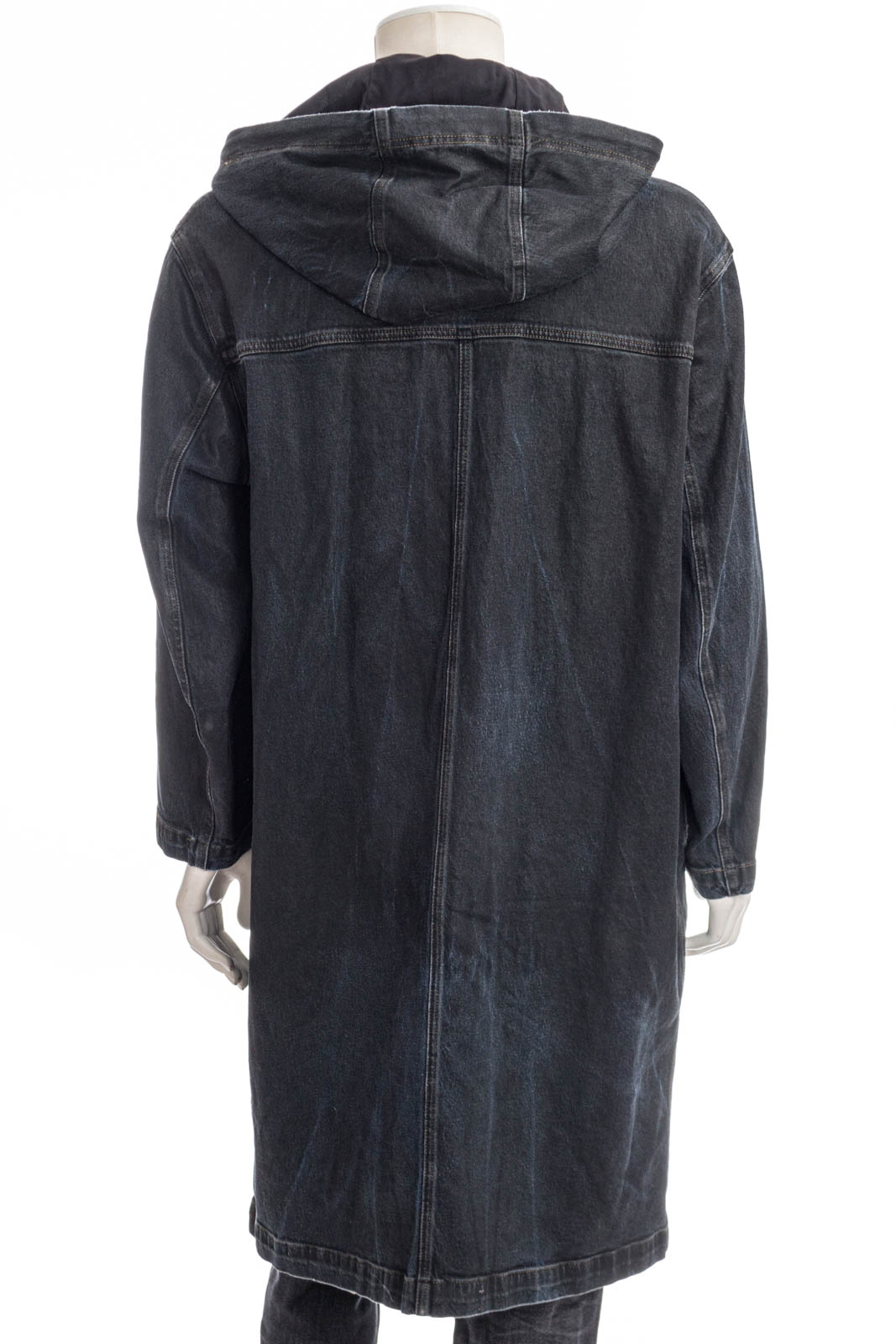 Mantel für Herren aus dunkelgrauem Denim in verwaschen melierter Optik und mit wasserabweisender Glanzbeschichtung. In übergroßem Fit mit Kapuze mit Tunnelzug. Mit Oval D-Logo am linken Ärmel.