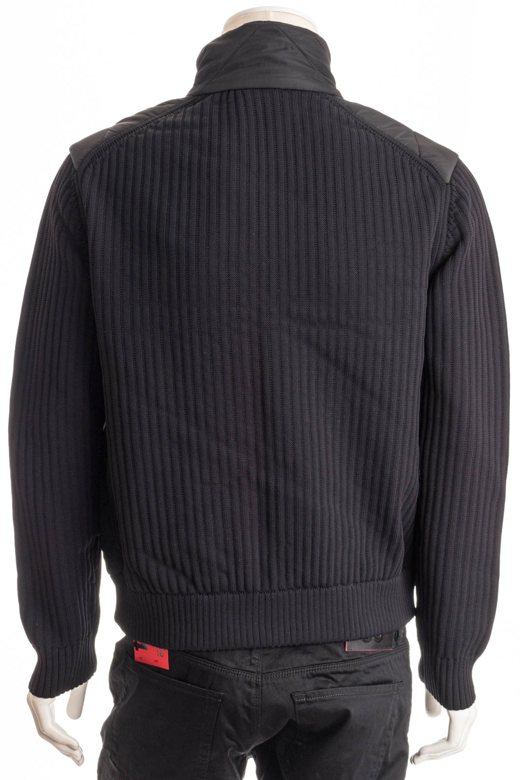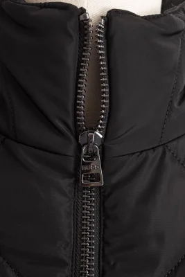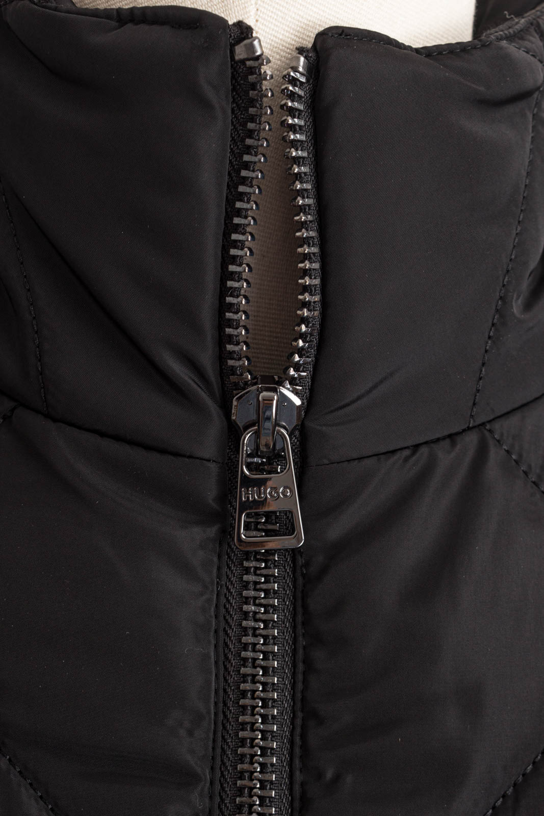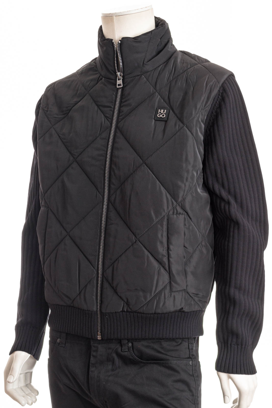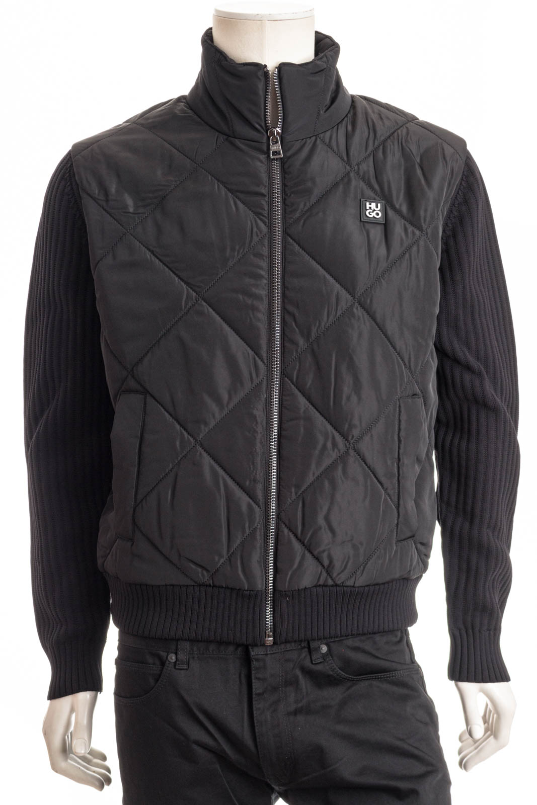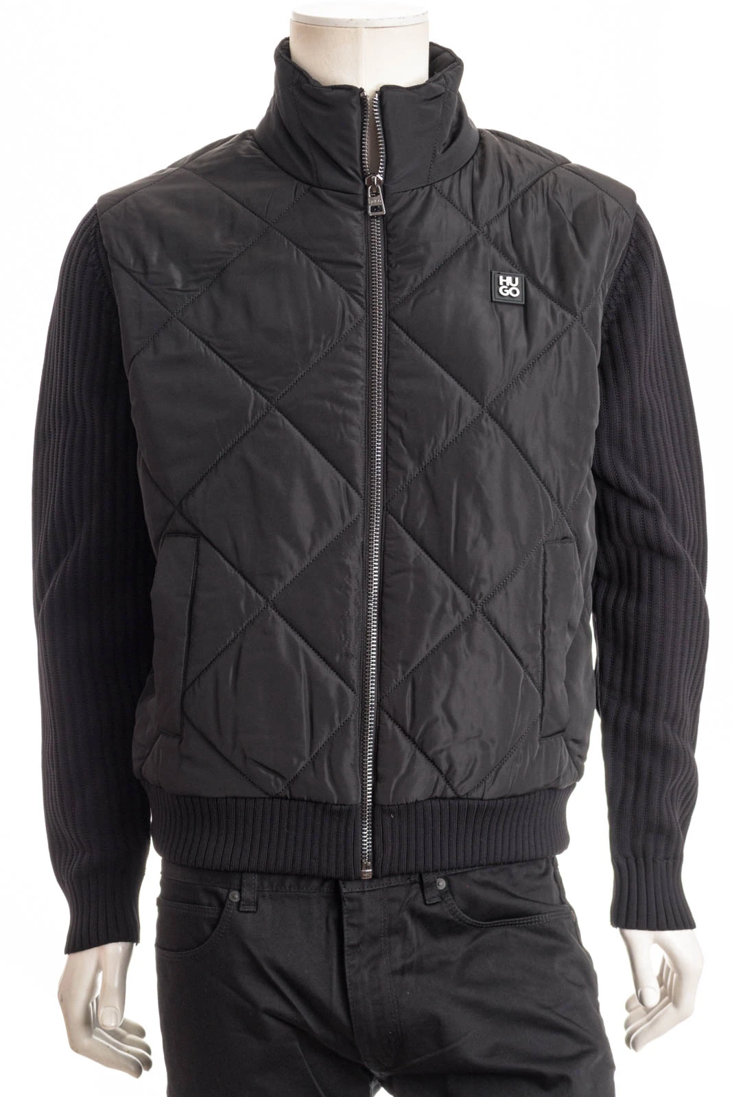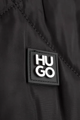 Wattierte HUGO Jacke aus verschiedenen Materialien mit Reißverschluss. Die gerade geschnittene Outerwear aus einem Baumwoll-Mix mit Schurwoll-Anteil ist mit einem Logo-Aufnäher versehen.