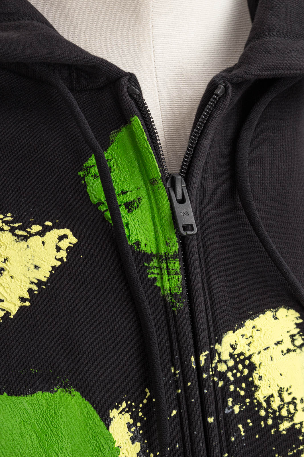 Lässige Kapuzen-Sweatjacke mit grün-gelb gemaltem Print.