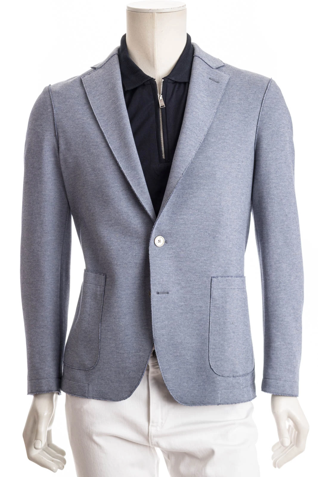 Schmal geschnittenes BOSS Sakko aus einem fein gemusterten Baumwoll-Mix mit Elasthan-Anteil.