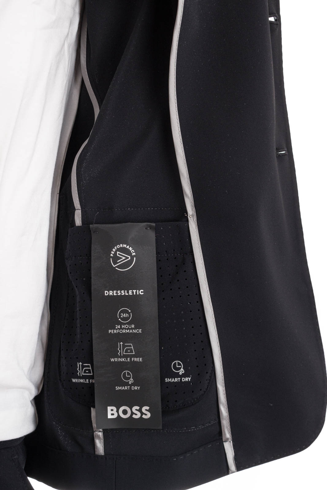 BOSS Einreiher aus Performance-Stretch-Jersey. FĂĽr optimalen Tragekomfort ist das Sakko ohne Innenfutter gefertigt.