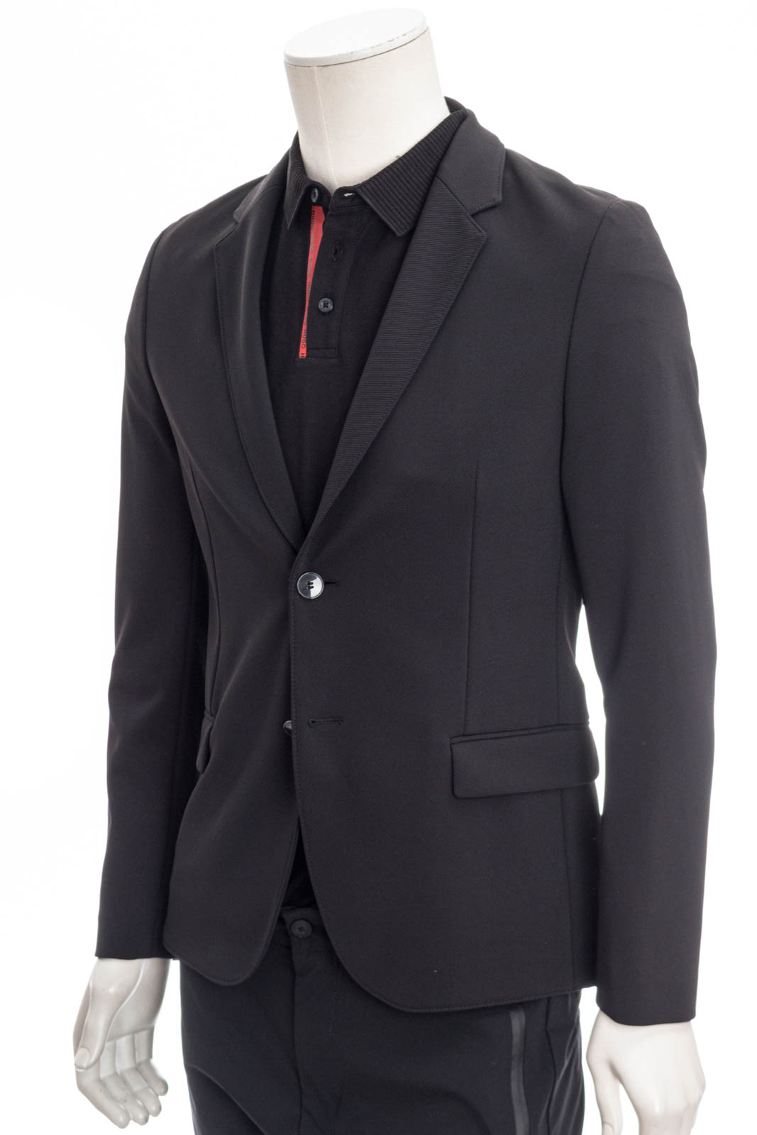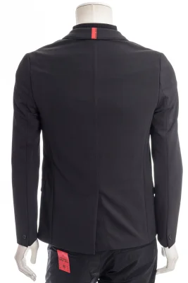 Tailliertes Sakko mit leicht gerippter Oberfläche und rotem Schriftzug im Nacken.