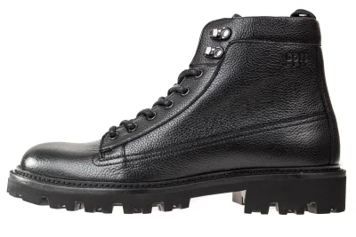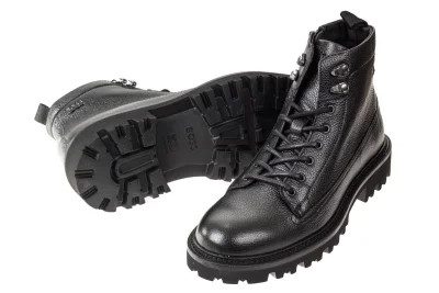 Die BOSS Boots aus edlem genarbtem Leder sind mit einer SchnĂĽrung im Wanderschuh-Stil ausgestattet, die fĂĽr einen sicheren und komfortablen Sitz sorgt. Logo-Details. Profilsohle.
