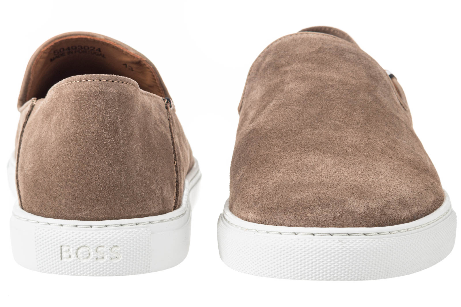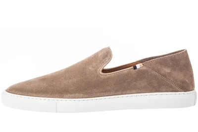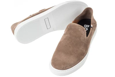 BOSS Slipper aus edlem Veloursleder mit dezentem BOSS-Logo und gummierter Sohle.