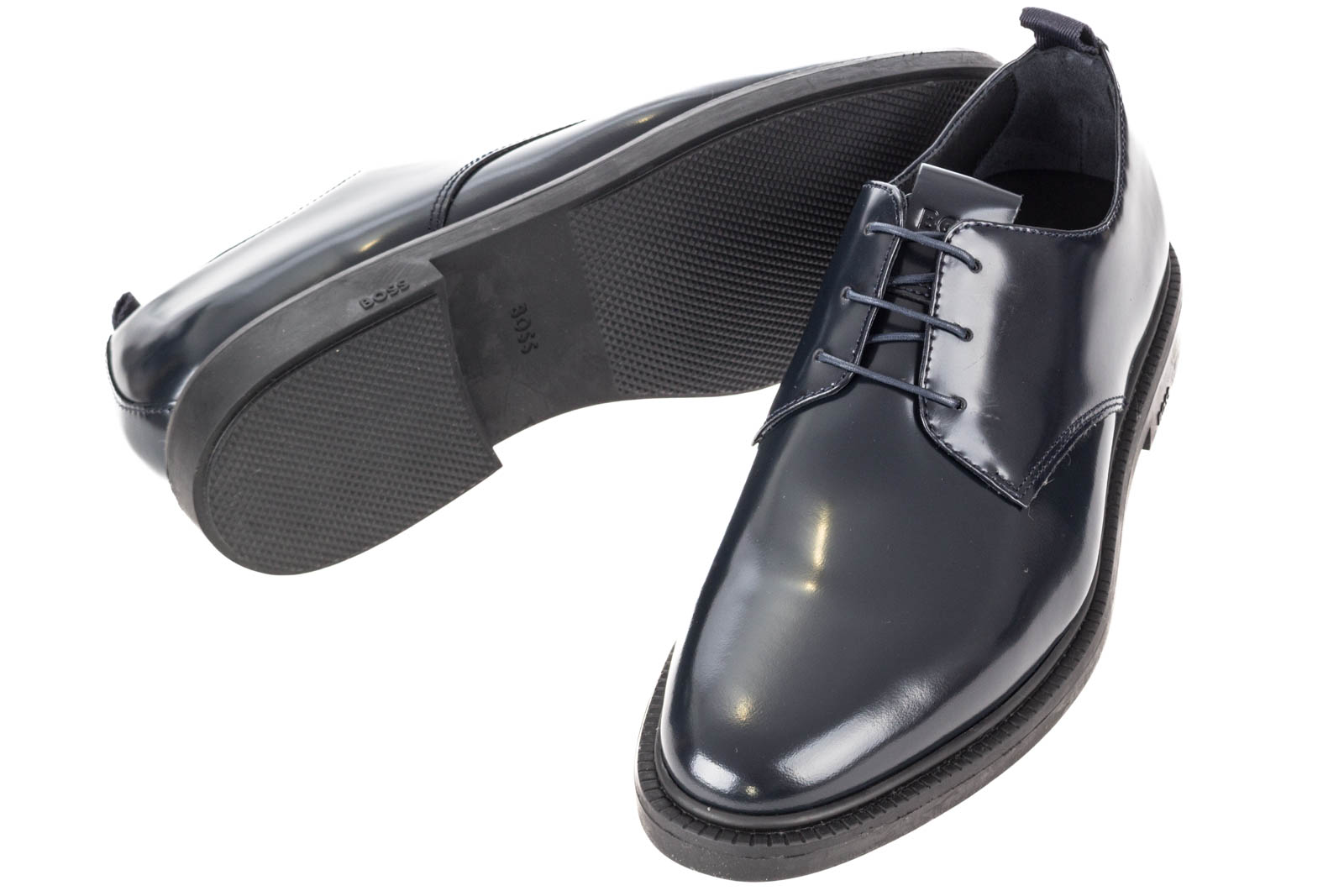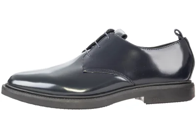 Zeitgemäße BOSS Derbys. Die Herren-Schnürer sind aus gebürstetem Leder in polierter Optik gefertigt.