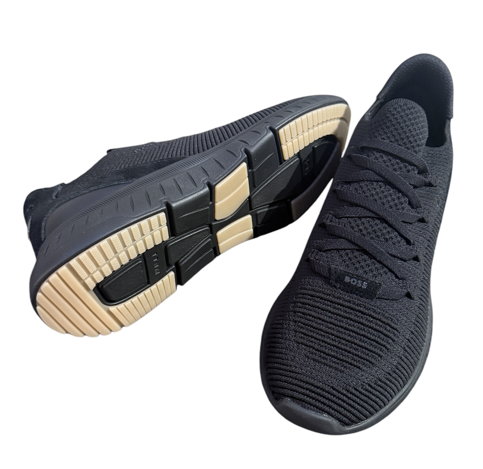 Die charakteristischen BOSS Sneakers im Laufschuh-Stil sind aus verschiedenen Materialien gefertigt, darunter Besätze aus Leder. Leichte, gerillte Sohlen. Gestricktes Obermaterial für hohen Tragekomfort und eine optimale Passform.