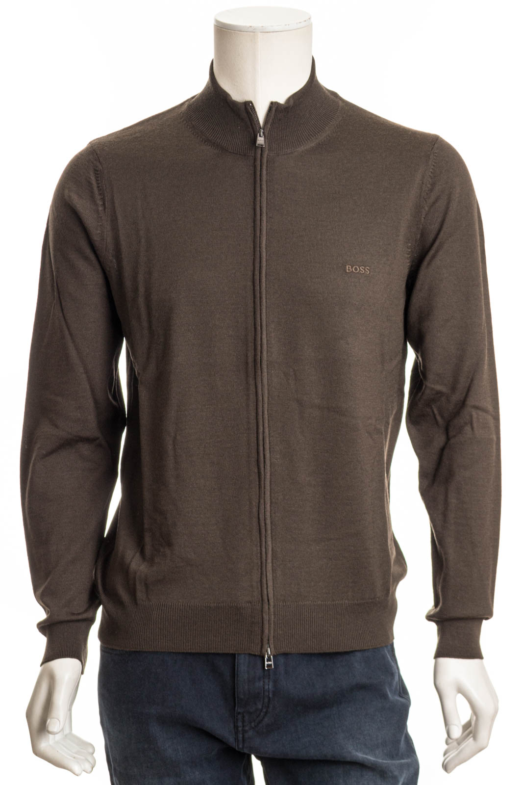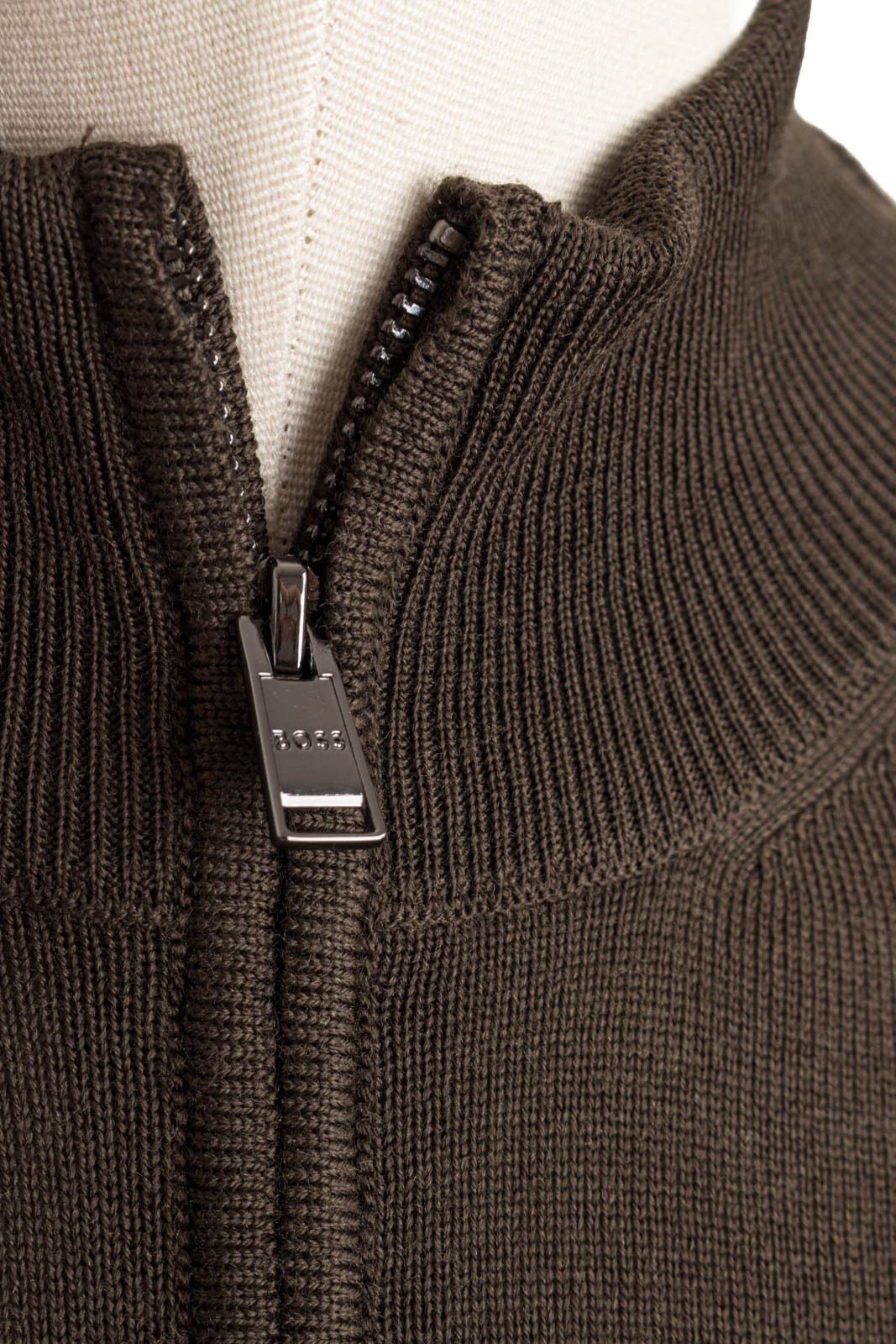 Gerade geschnittene BOSS Strickjacke. Der Cardigan aus Schurwolle ist mit einem BOSS Logo bestickt.