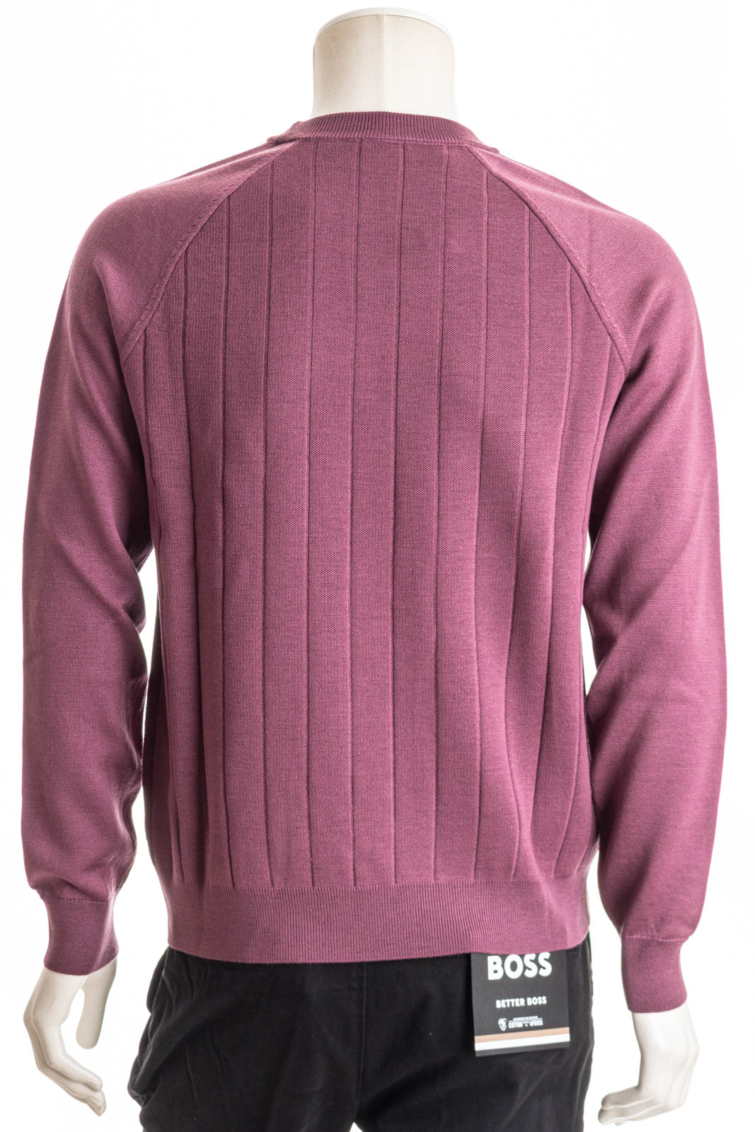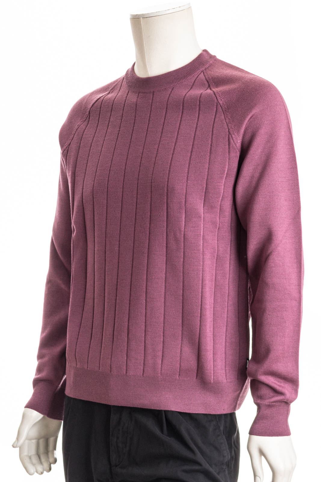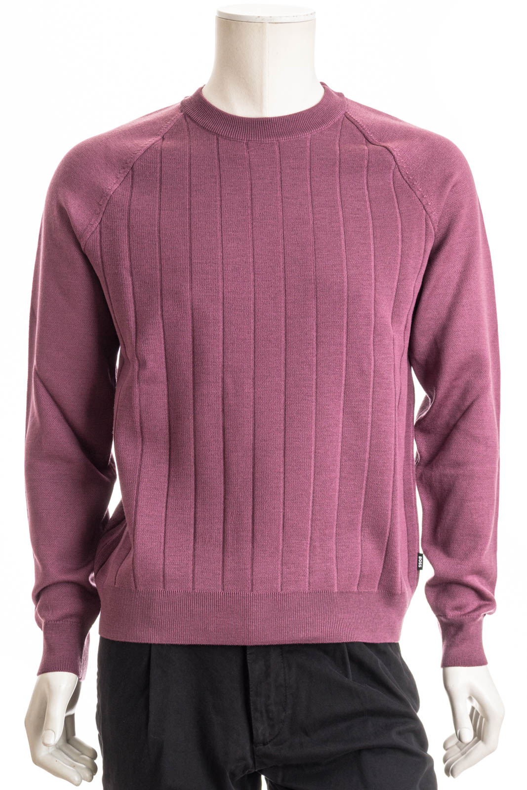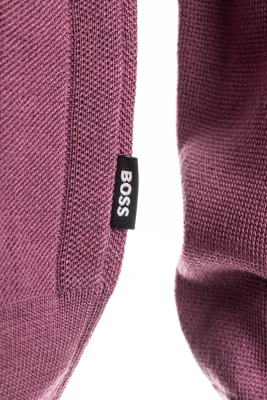 BOSS Pullover mit gerader Passform. Der Layer aus einem atmungsaktiven Woll-Mix ist am Rumpf mit einer Streifen-Struktur versehen.