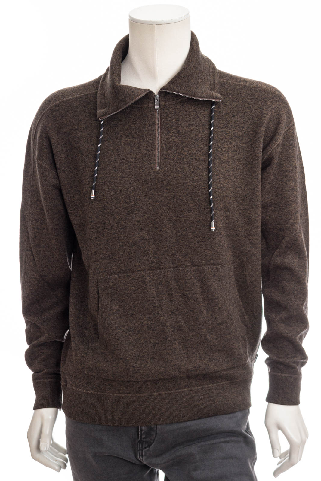Locker geschnittener BOSS Pullover aus einem Baumwoll-Mix mit Schurwoll-Anteil. Ein Reißverschluss am Kragen, ein Tunnelzug und eine Kängurutasche runden den Style ab.