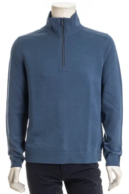 Vielseitig kombinierbarer BOSS Menswear Pullover mit kurzem ReiĂźverschluss. Das Regular-Fit Top ist mit Strickelementen aus einem Woll-Mix versehen, die durch Softshell-BĂĽndchen akzentuiert werden.