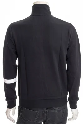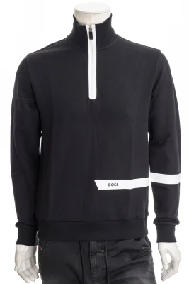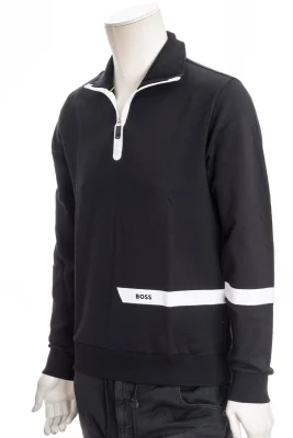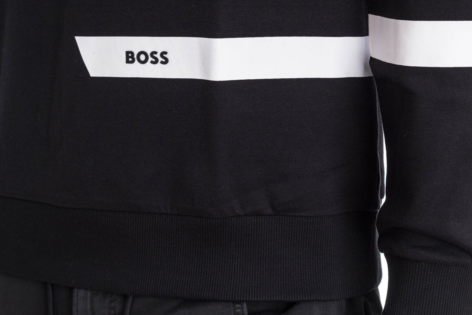 Gerade geschnittenes BOSS Sweatshirt aus einem elastischen Baumwoll-Mix mit sportiven Streifen, Logo und geklebten Einfassungen am Troyerkragen.