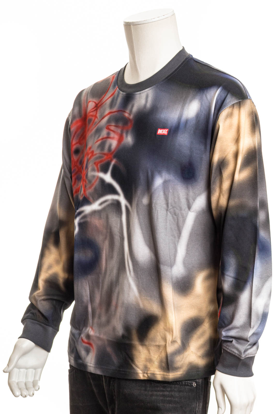 Grafische Motive finden sich in diesem langärmeligen T-Shirt für Herren, das aus leichtem Single Jersey gefertigt ist. Mühelos tragbar, ist es all-over mit Graffiti-Effekt-Leuchtstreifen bedruckt und verfügt über ein kleines Diesel „Biscotto“-Logo auf der Brust.