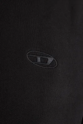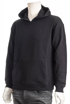 Schwarzer Hoodie für Herren aus Loopback-Baumwolljersey. Das Modell in entspannter, leicht kastiger Passform weist auf der Brust ein Ton-in-Ton aufgesticktes Oval D auf – die gebleichte Variante des kultigen Logos auf der Rückseite ist nicht zu übersehen.