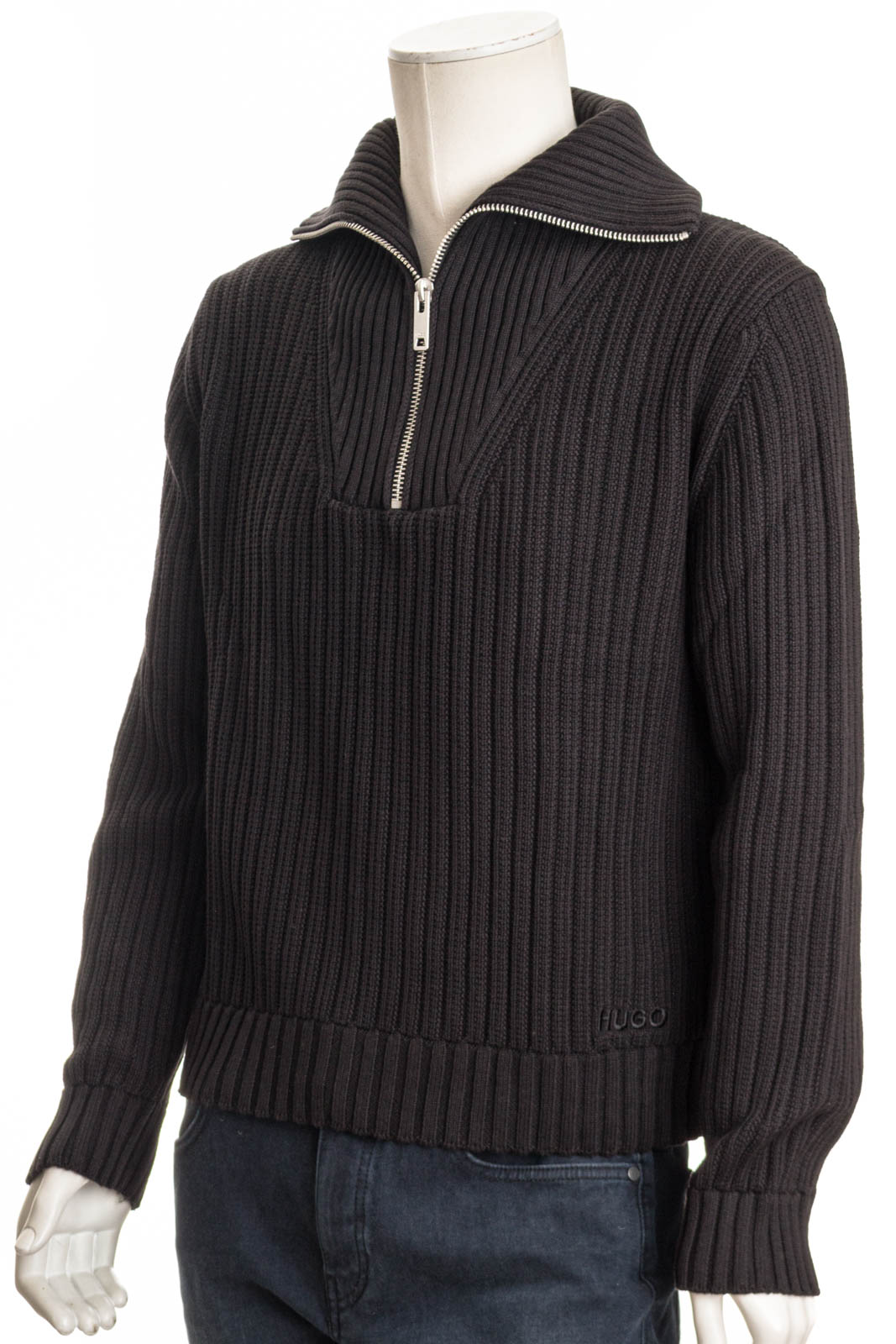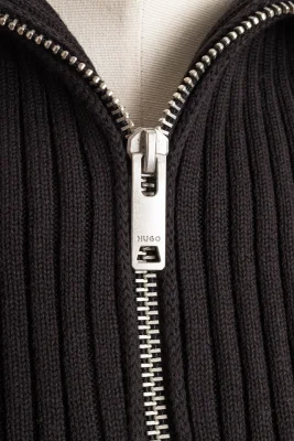 Der gerade geschnittene HUGO Pullover aus Baumwolle ist ein sportlicher Layer mit grober Struktur und Troyerkragen.