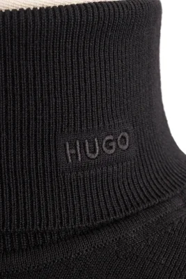 HUGO Rollkragenpullover. Der maskuline Regular-Fit Pullover ist aus besonders feiner Schurwolle gestrickt, die die Temperatur reguliert und optimalen Tragekomfort verspricht. Eine HUGO Logo-Stickerei setzt ein dezentes Branding.