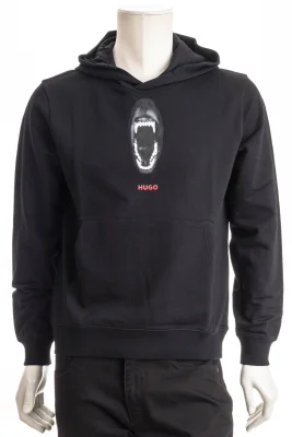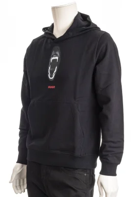 Modisches Sweatshirt von HUGO mit Kapuze und saisonalem Print vorn und hinten.
