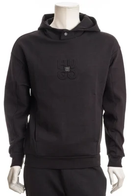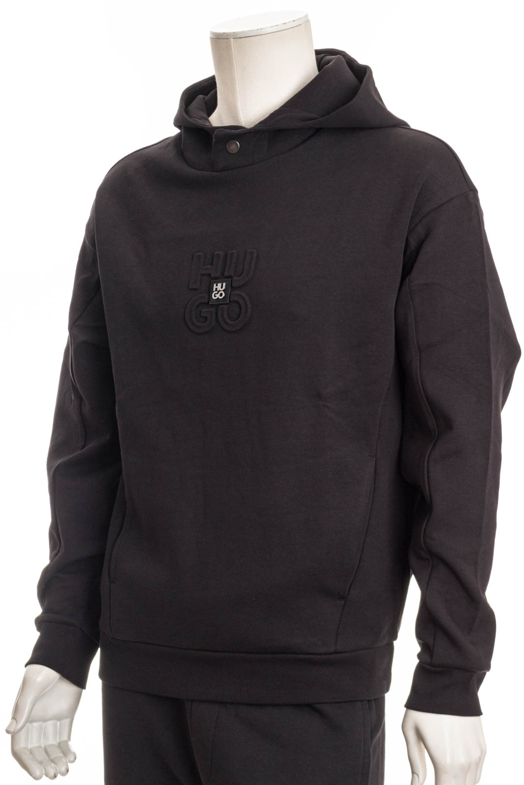 Locker geschnittener HUGO Kapuzenpullover mit gelayerten Stack-Logos auf der Brust. Der Style ist aus einem Baumwoll-Mix gefertigt und hat einen Druckknopf am Kragen.