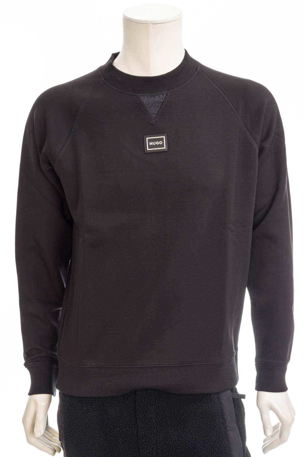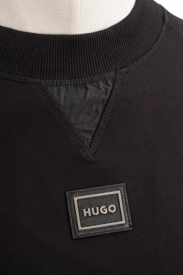Gerade geschnittenes HUGO Sweatshirt mit Rundhalsausschnitt. Das Herren-Sweatshirt aus einem elastischen Baumwoll-Mix mit Interlock-Struktur ist mit einem eingerahmten HUGO Logo und einem sportiven, tonalen Einsatz versehen.