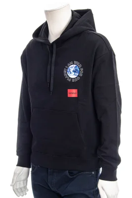 Locker geschnittenes HUGO Kapuzen-Sweatshirt aus French Terry mit Globus-Print, Slogan und Branding.