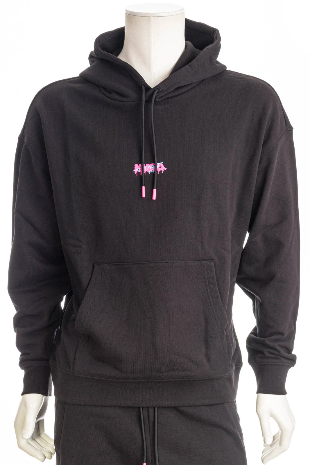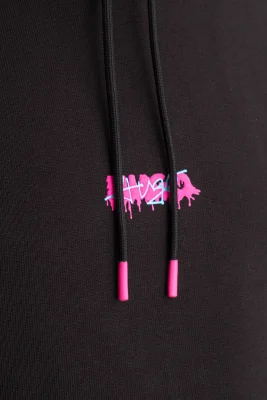 Charakteristischer HUGO Kapuzenpullover aus French Terry mit Oversize-Passform und markantem Logo-Print in schmelzender Optik auf Vorder- und RĂĽckseite.