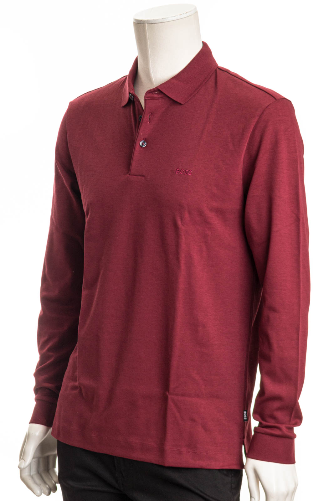 Longsleeve-Poloshirt mit gerader Passform. Das Herren-Polo aus Interlock-Gewebe ist mit einer Drei-Knopf-Leiste versehen. Auf der Brust befindet sich eine tonale Logo-Stickerei.
