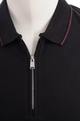 Schmal geschnittenes BOSS Poloshirt. Das Herren-Polo aus besonders softer Interlock-Baumwolle präsentiert sich mit kontrastfarbenen Einfassungen und einer Fischgrät-Struktur am Kragen. Eine Reißverschlussleiste rundet den zeitgemäßen Style ab.