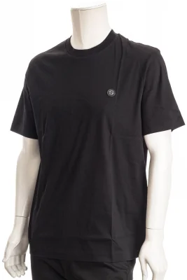 Gerade geschnittenes T-Shirt mit HUGO BOSS Logo aus Metall auf der Brust.