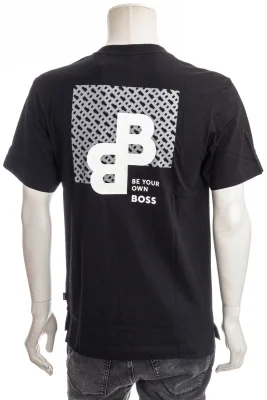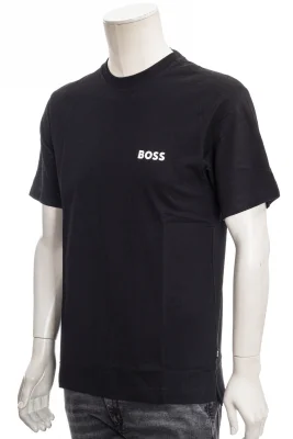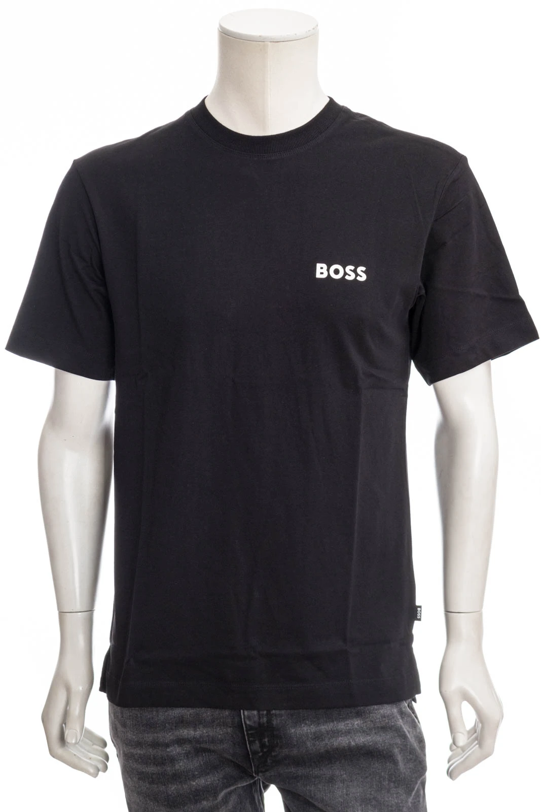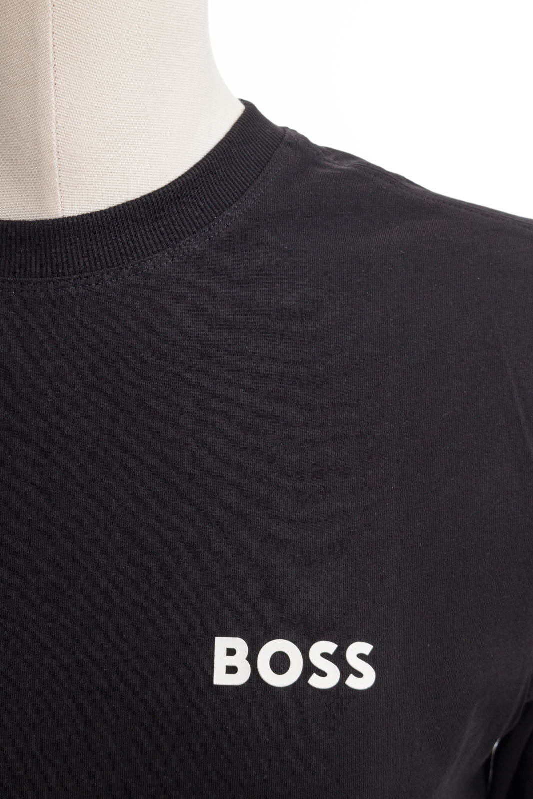 Gerade geschnittenes T-Shirt mit BOSS-Schriftzug auf der Brust und RĂĽckenprint.