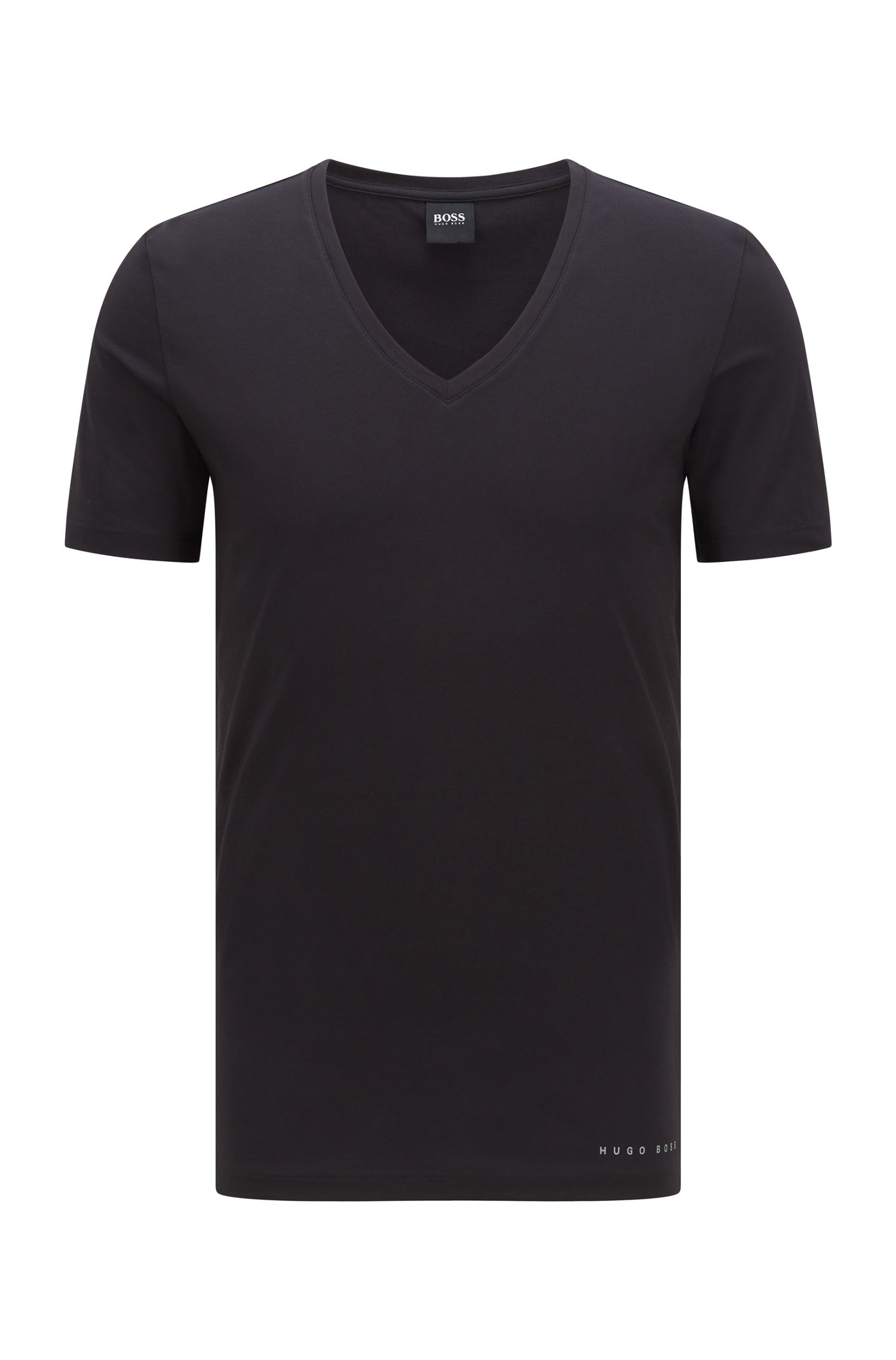 Schmall geschnittenes Shirt mit V-Ausschnitt und Logo-Print am Saum.