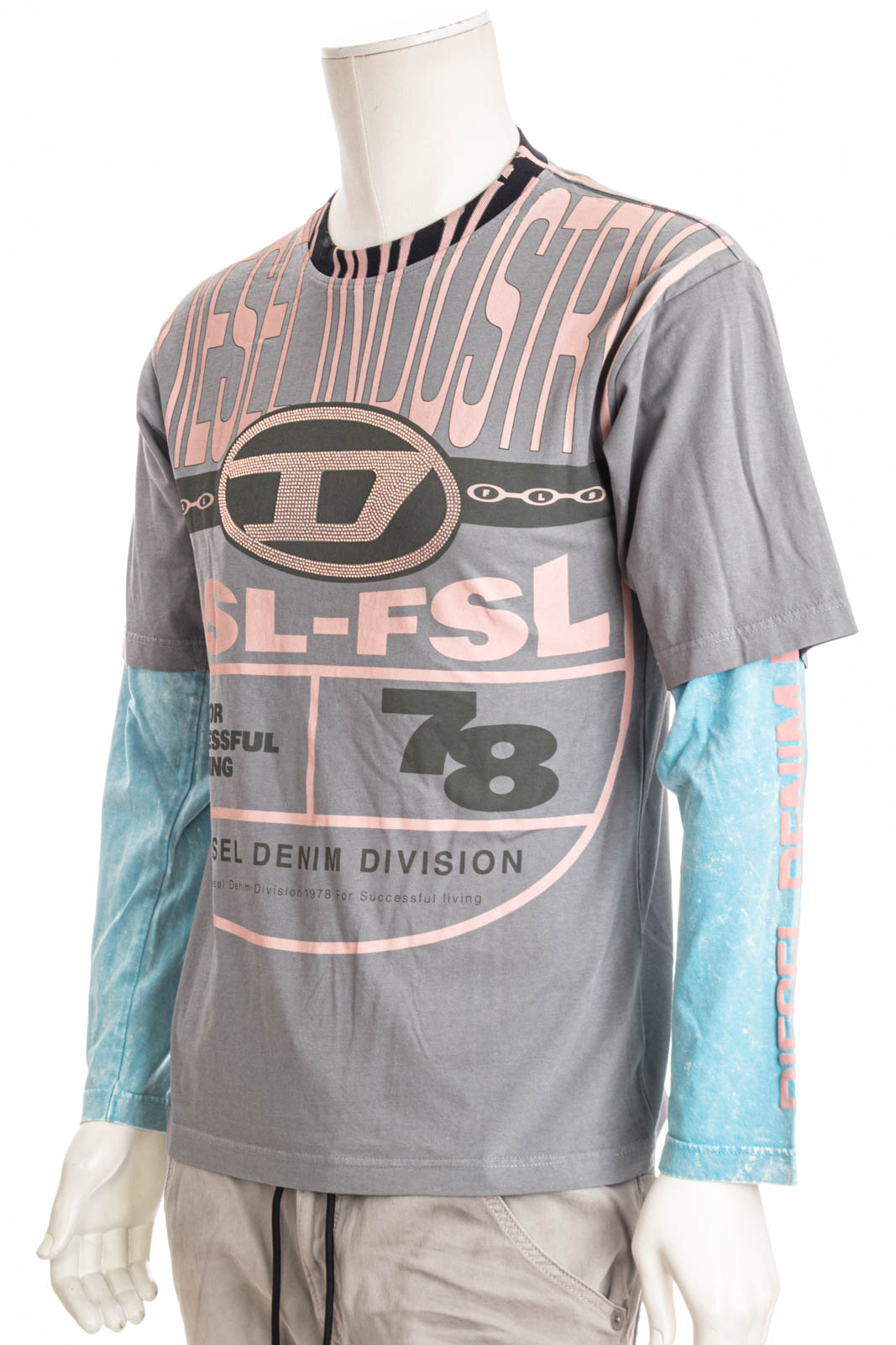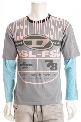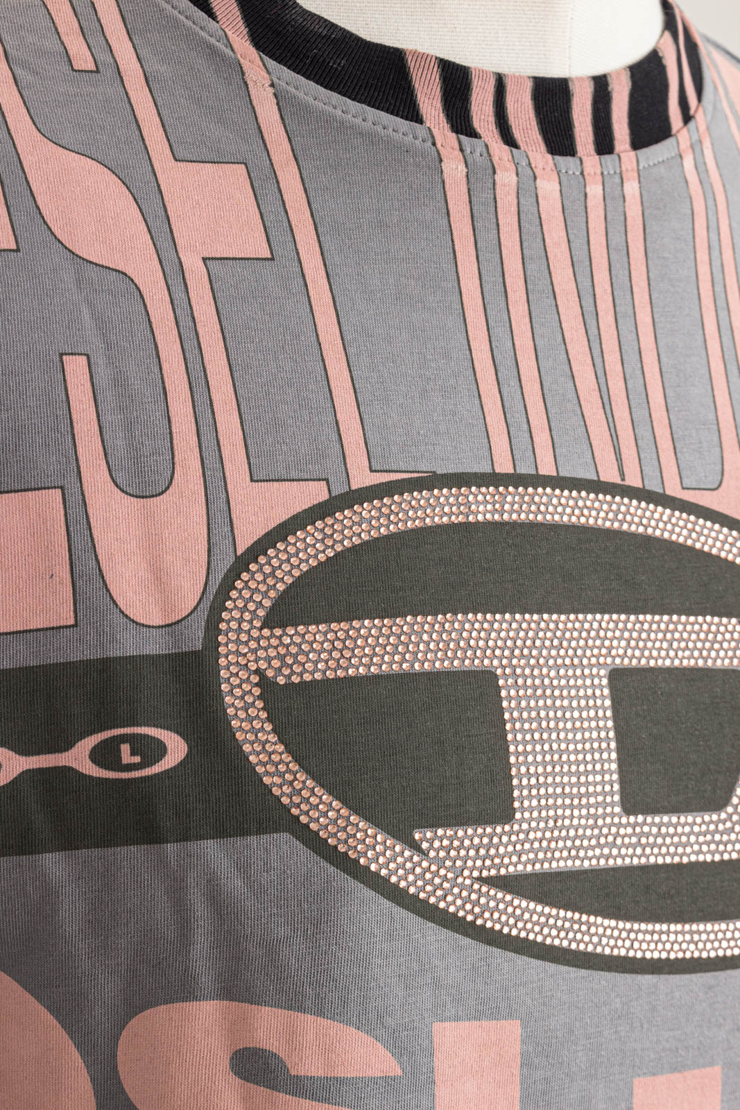 T-Shirt für Damen aus leichtem Baumwolljersey, mit Diesel Industry-Maxi-Print mit Strass am Oval D-Logo. Langarmeinsätze werten die locker-lässige Silhouette in marmorierter Optik auf.