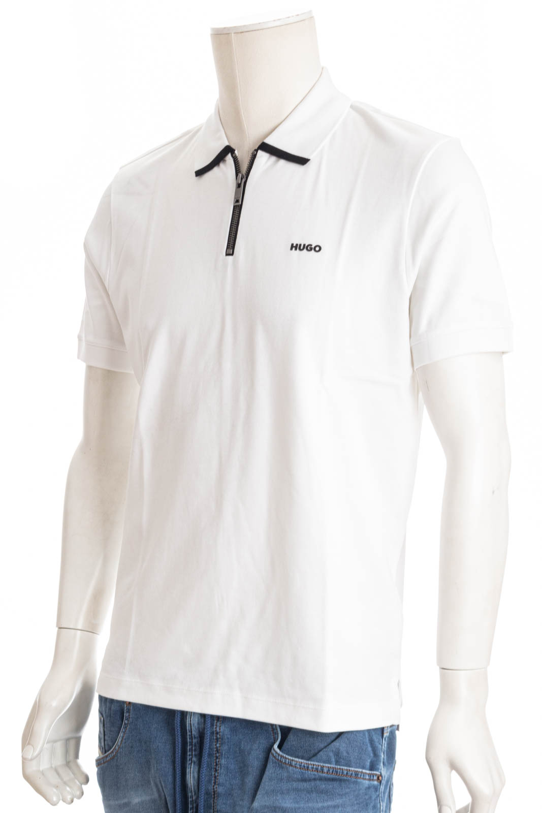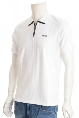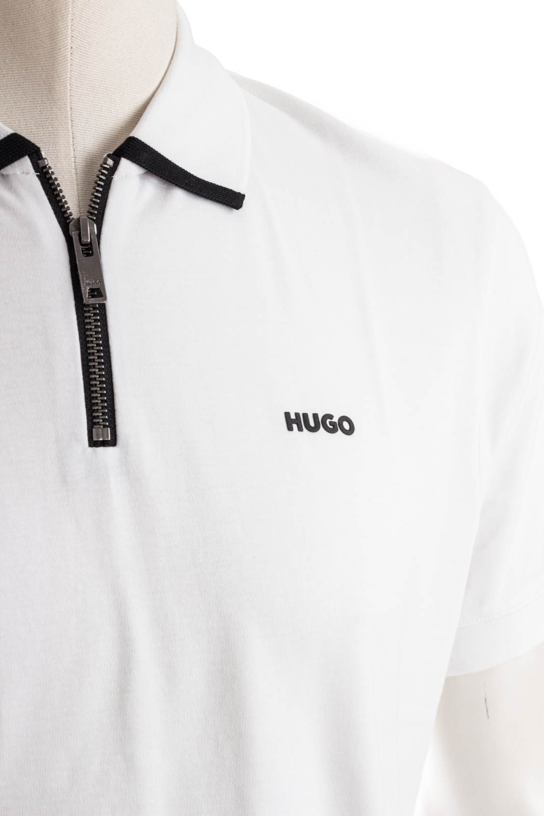 Sportives HUGO Poloshirt aus Baumwoll-Piqué mit gerader Passform, Reißverschlussleiste und kontrastfarbenem Logo.