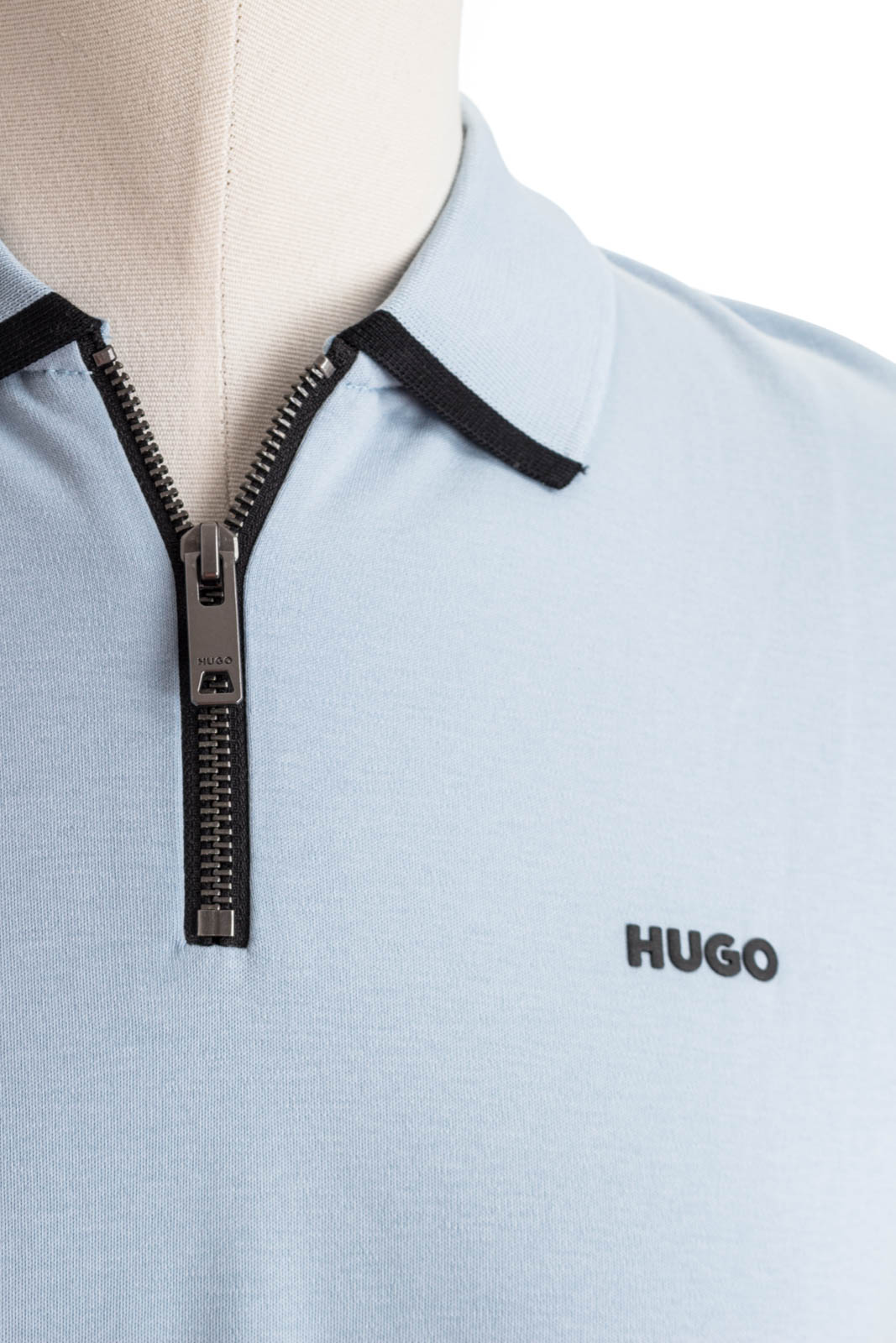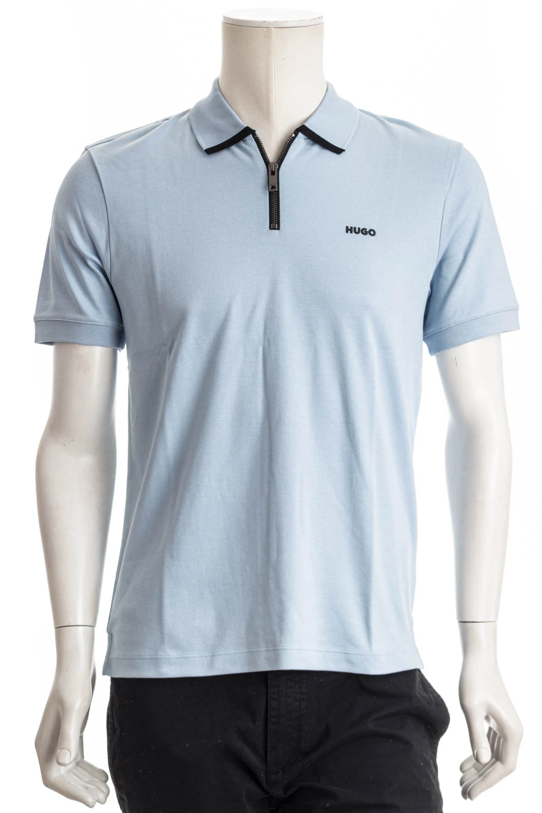 Sportives HUGO Poloshirt aus Baumwoll-Piqué mit gerader Passform, Reißverschlussleiste und kontrastfarbenem Logo.