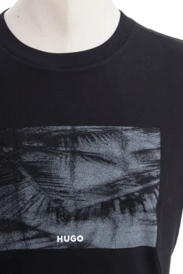 Gerade geschnittenes HUGO T-Shirt aus besonders softem Jersey mit abstrakter Palmen-Grafik und Logo-Detail.