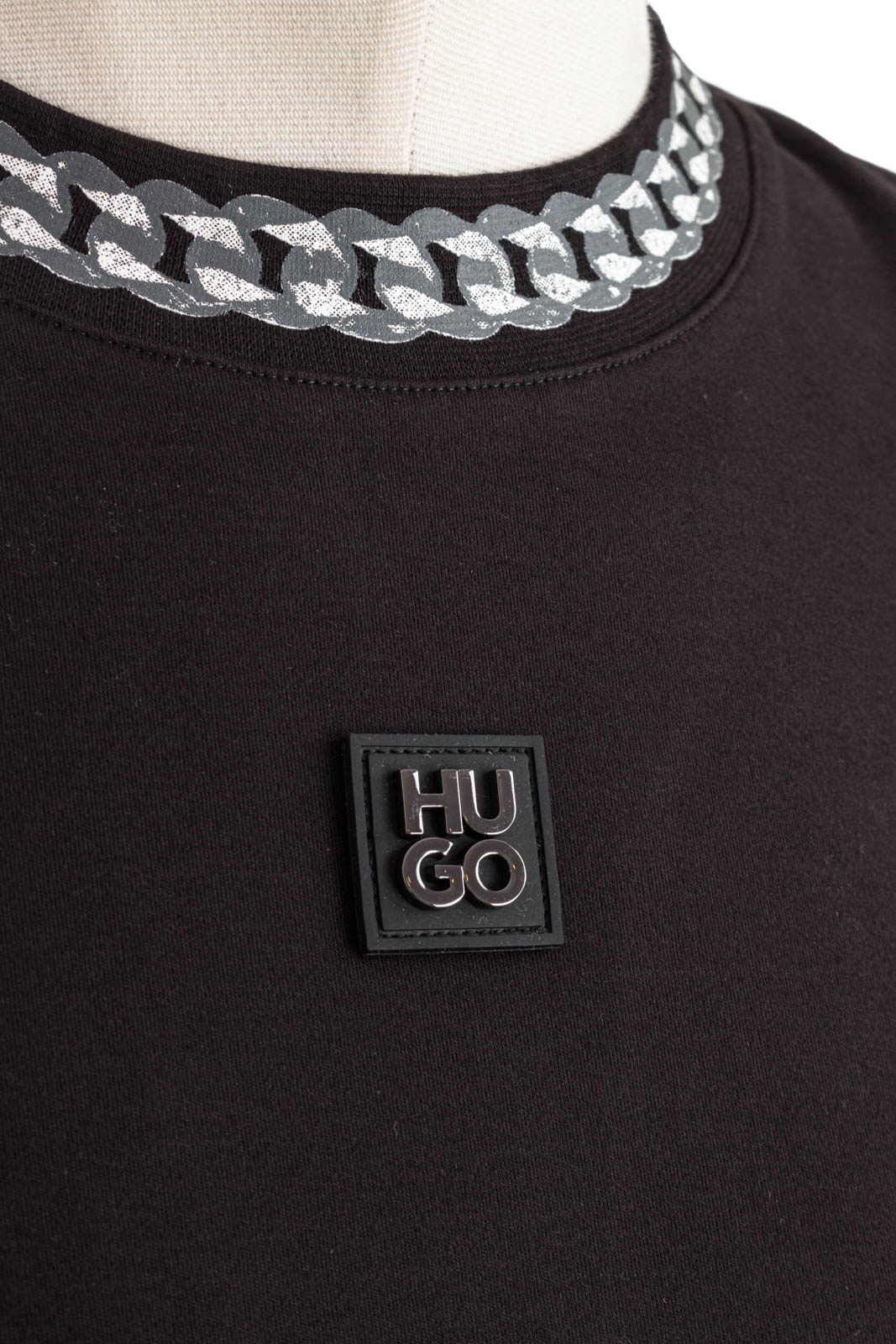 Locker geschnittenes HUGO T-Shirt aus einem besonders soften Interlock-Gewebe mit Ketten-Print am Ausschnitt.