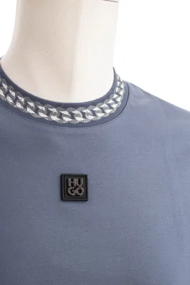 Locker geschnittenes HUGO T-Shirt aus einem besonders soften Interlock-Gewebe mit Ketten-Print am Ausschnitt.