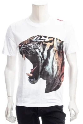Markantes HUGO T-Shirt aus Single Jersey mit gerader Passform, markanter Tiger-Grafik und Logo-Print.