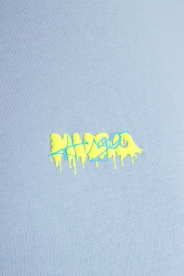 Charakteristisches HUGO T-Shirt. Das locker geschnittene T-Shirt aus Single Jersey ist mit dem Branding der neuen Saison auf Vorder- und RĂĽckseite versehen.