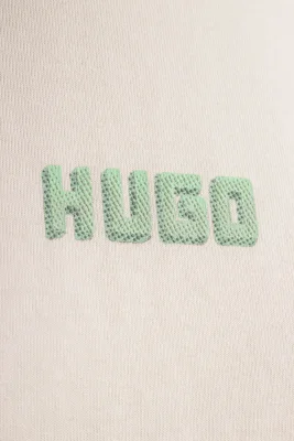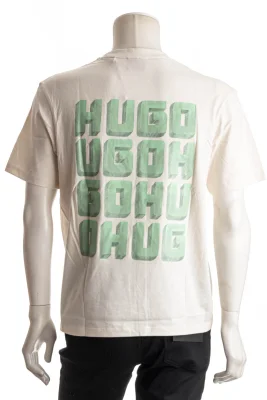 Locker geschnittenes HUGO T-Shirt aus Baumwoll-Jersey. Das charakteristische Top ist auf der RĂĽckseite mit groĂźen Logos der neuen Saison bedruckt.