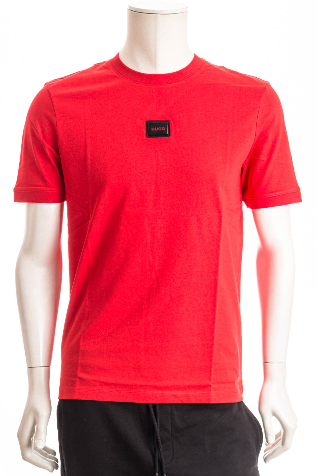 HUGO T-Shirt aus reiner Baumwolle. Das charakteristische Top mit gerader Passform ist auf der Brust mit einem gummierten Logo-Etikett versehen.