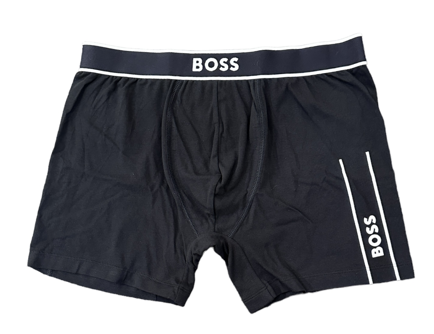 Zeitgemäße BOSS Boxershorts. Die eng anliegende Herren-Unterwäsche aus komfortablem Single Jersey ist aus elastischer Baumwolle gefertigt. Am linken Bein und am Bund befindet sich je ein Kontrast-Logo.
