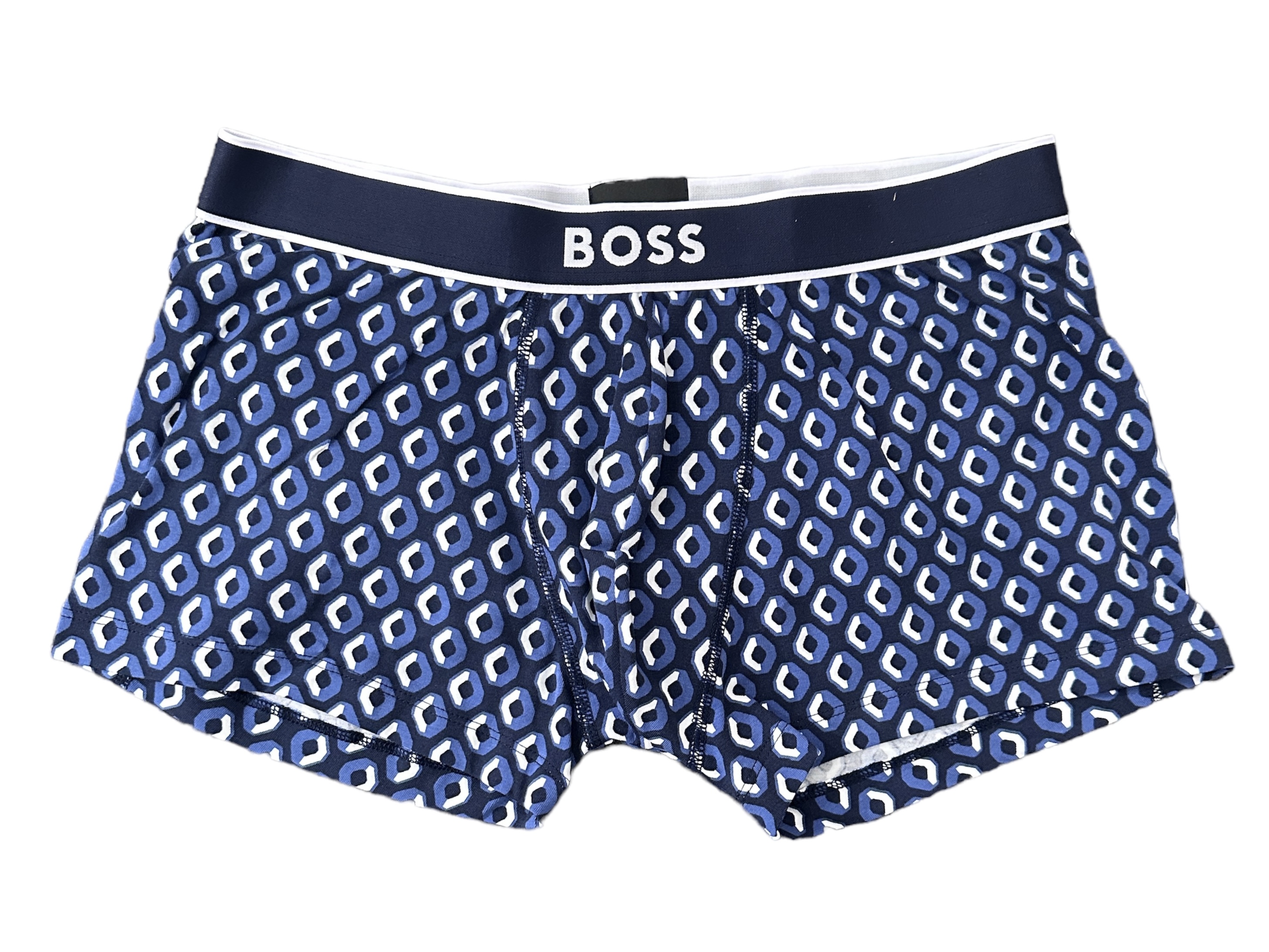 Charakteristische BOSS Boxershorts aus einem elastischen Gewebe mit mittlerer Bundhöhe, Logo-Bund und saisonalem Muster.