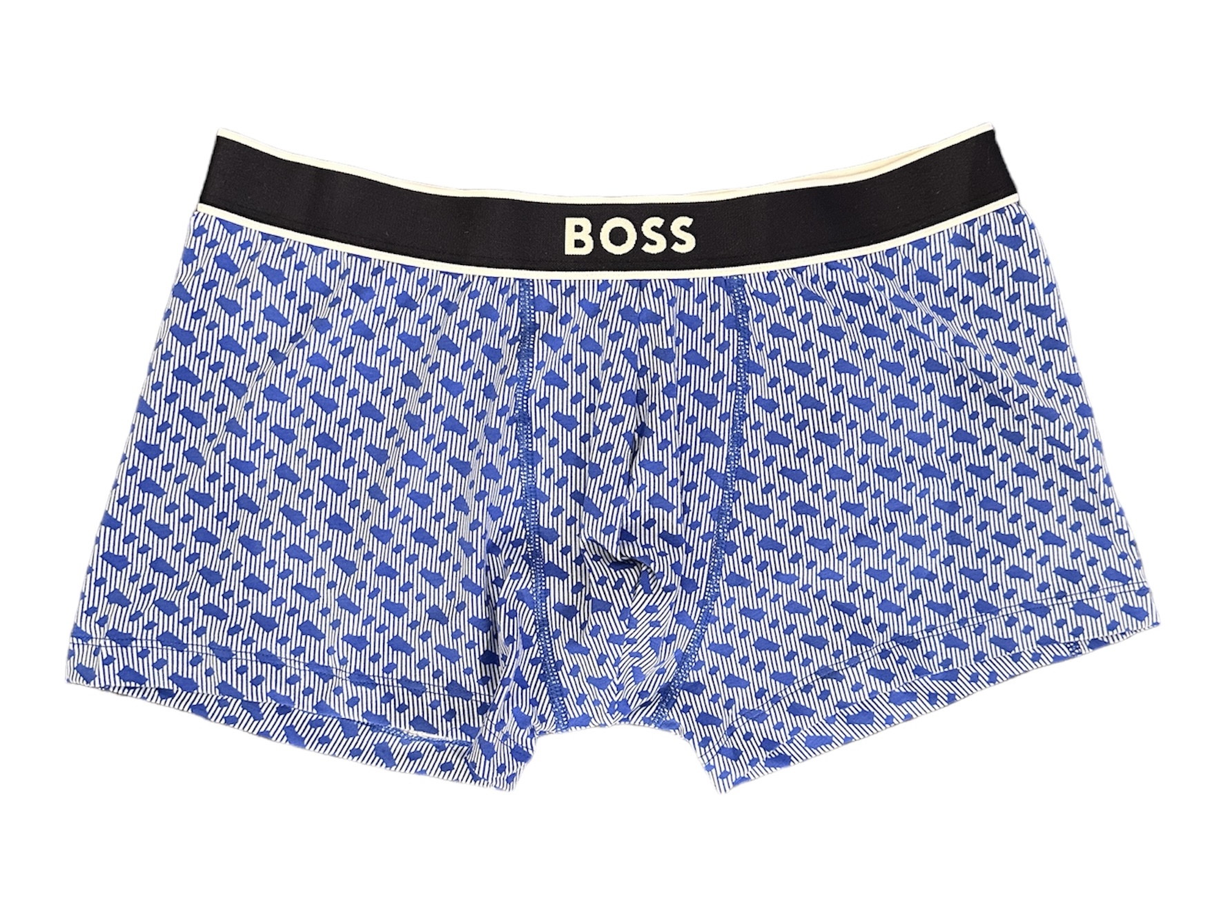 Charakteristische BOSS Boxershorts aus einem elastischen Gewebe mit mittlerer Bundhöhe, Logo-Bund und saisonalem Muster.