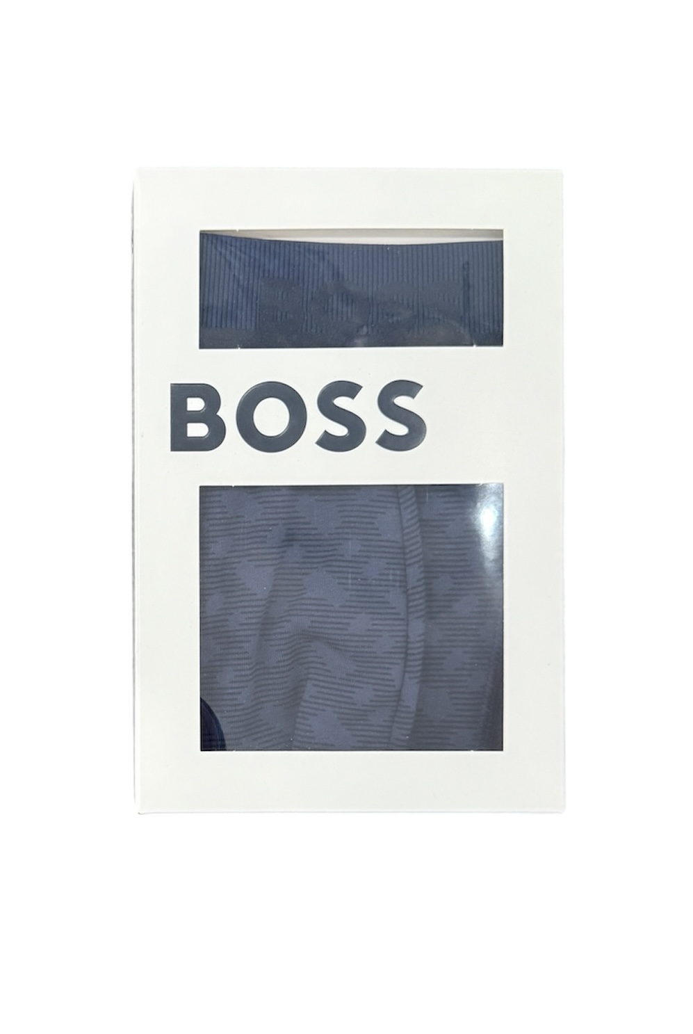 Charakteristische BOSS Boxershorts aus einem elastischen Gewebe mit mittlerer Bundhöhe, Logo-Bund und saisonalem Muster.