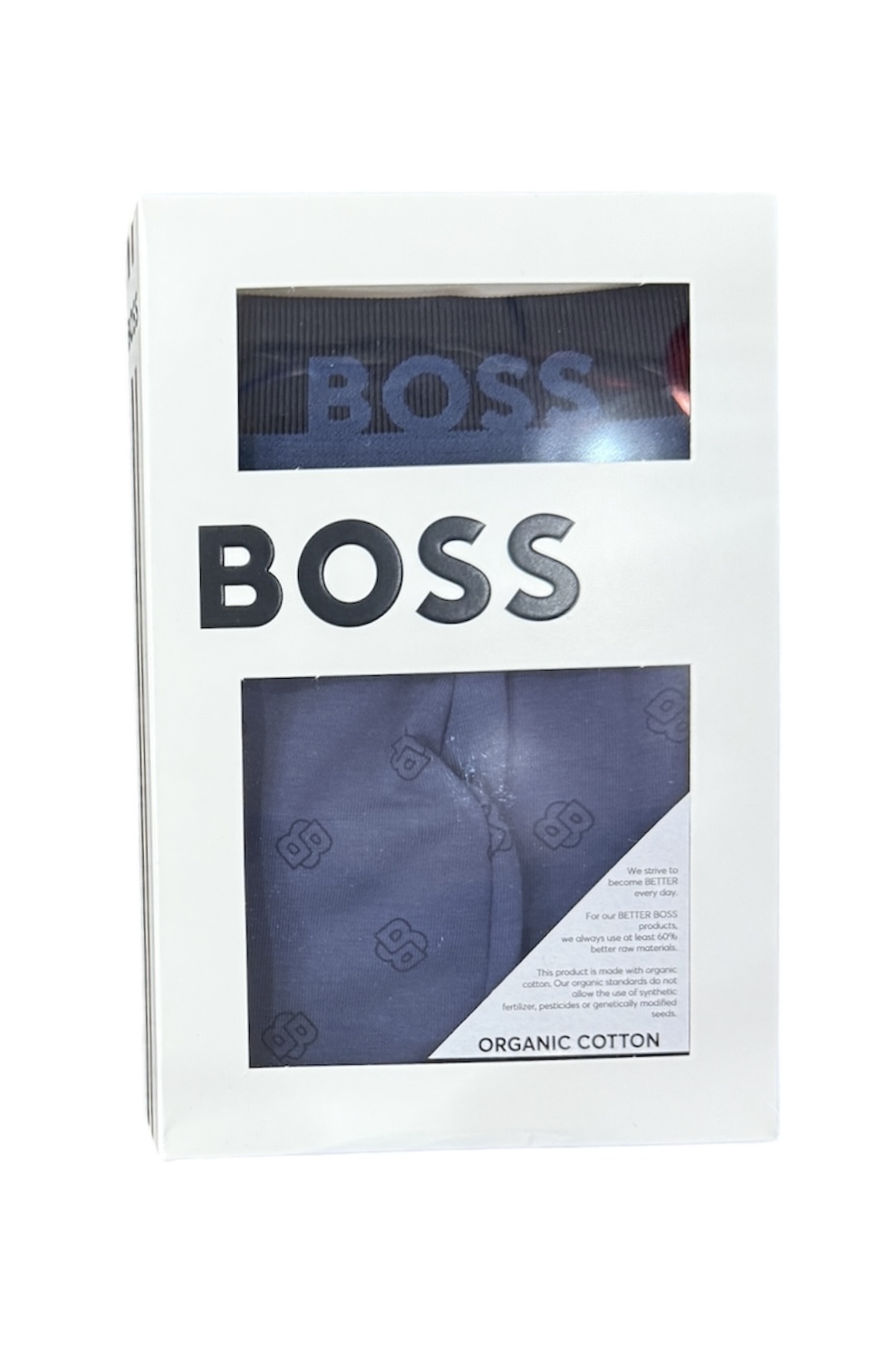 Charakteristische BOSS Boxershorts aus einem elastischen Gewebe mit mittlerer Bundhöhe, Logo-Bund und saisonalem Muster.